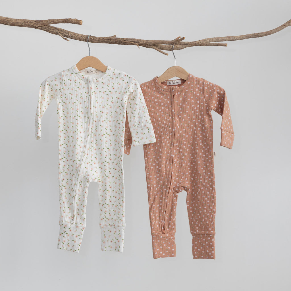 זוג אוברולים פרחים (לבן פנינה ורוד 30013)