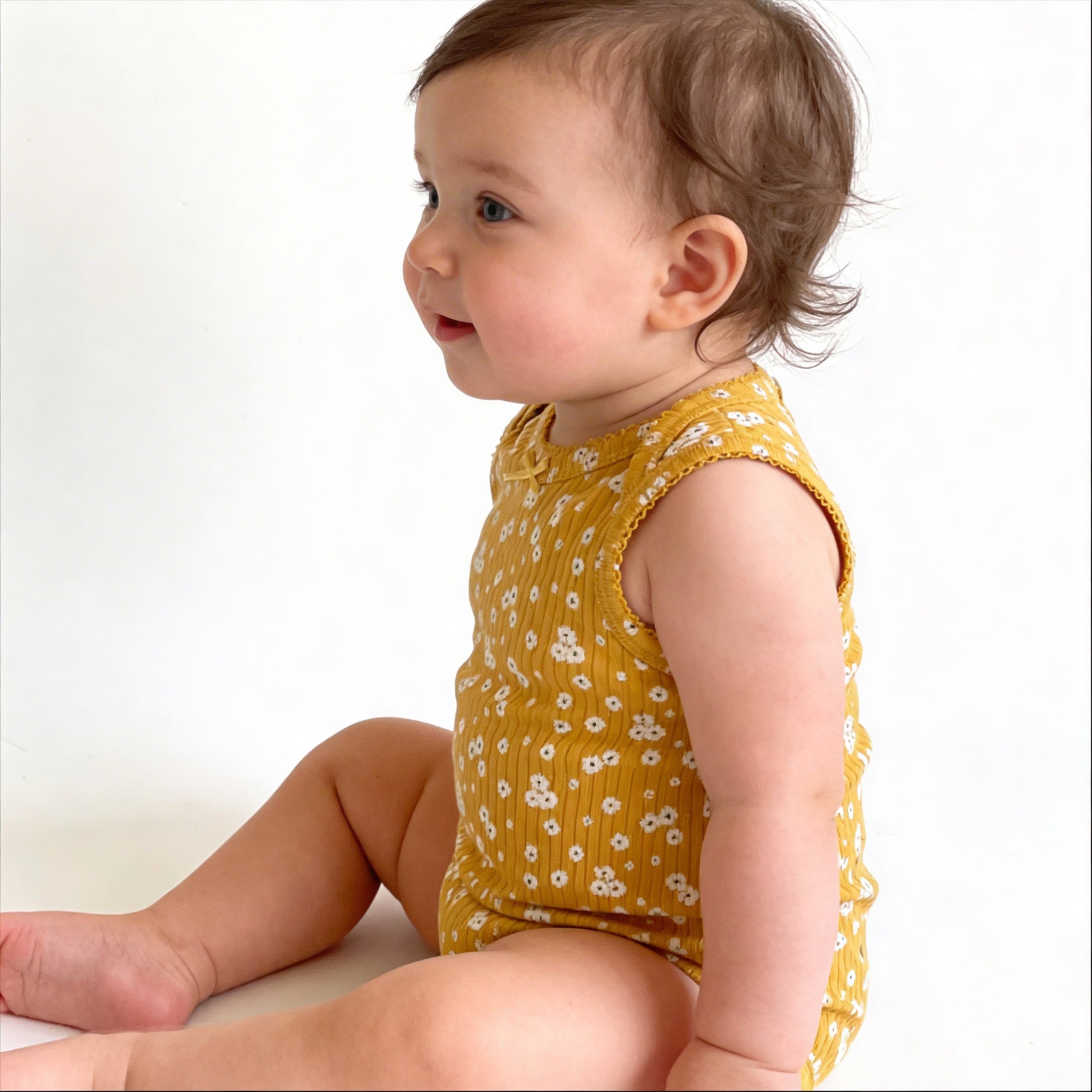 שלישיית בגדי גוף מודפסים ללא שרוול (צהוב 1205)