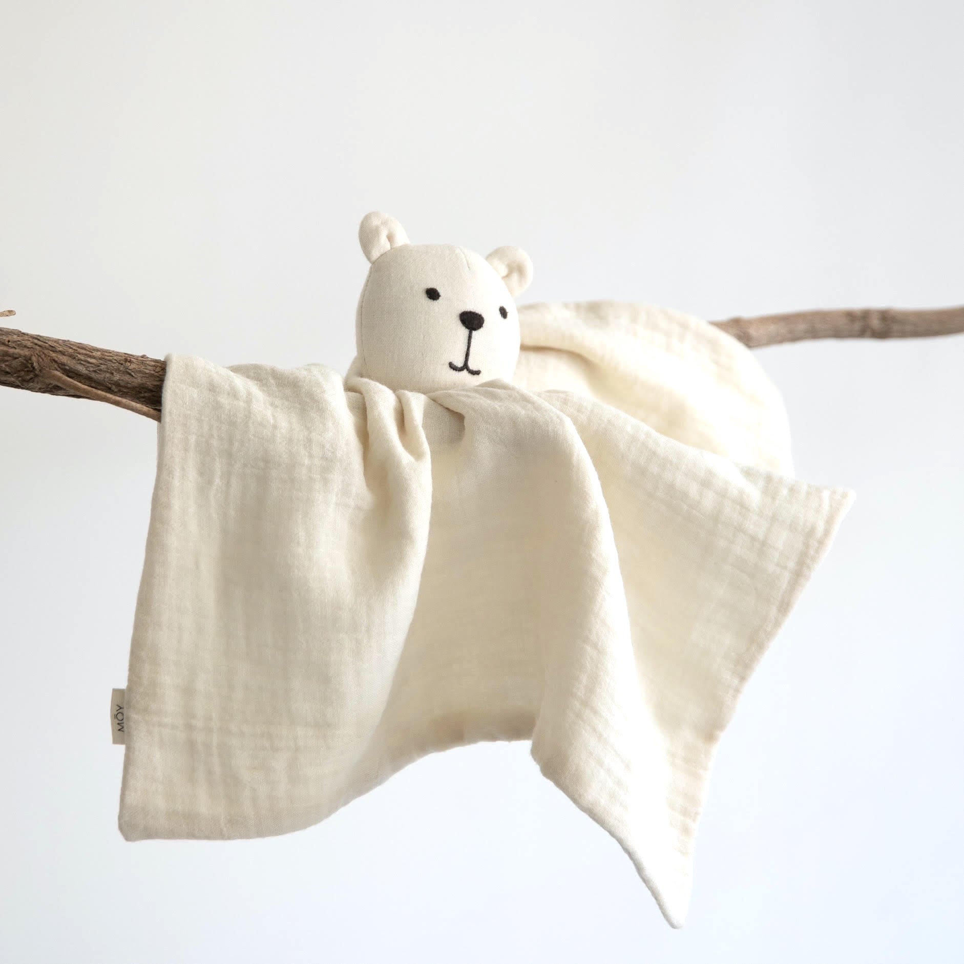 שמיכי דובון, עשוי כותנה אורגנית נעימה ומלטפת,משמש כחפץ מעבר מרגיע לפעוטות.