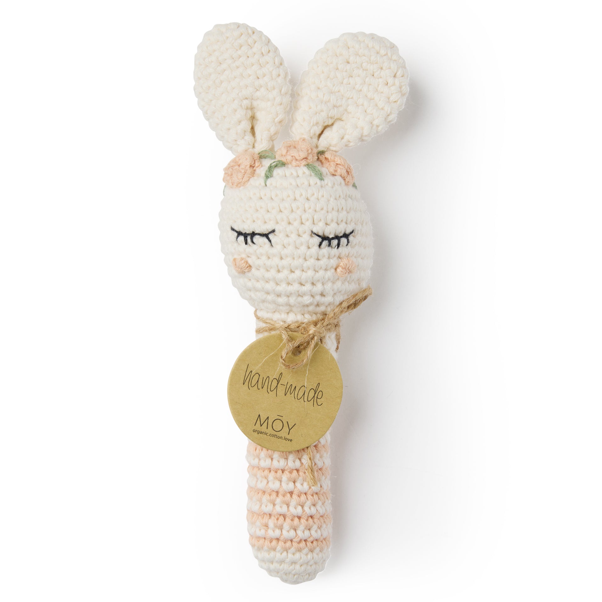 רעשן סרוג בעבודת יד, עשוי כותנה סרוקה איכותית. מותאם לגירוי חושי אצל קטנטנים