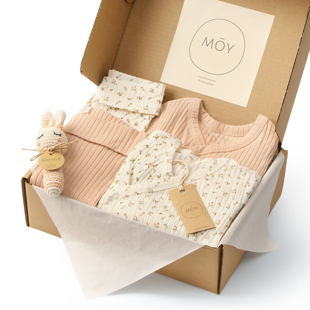 מארז לידה ״סופיה״ ורוד ניוד פרחוני