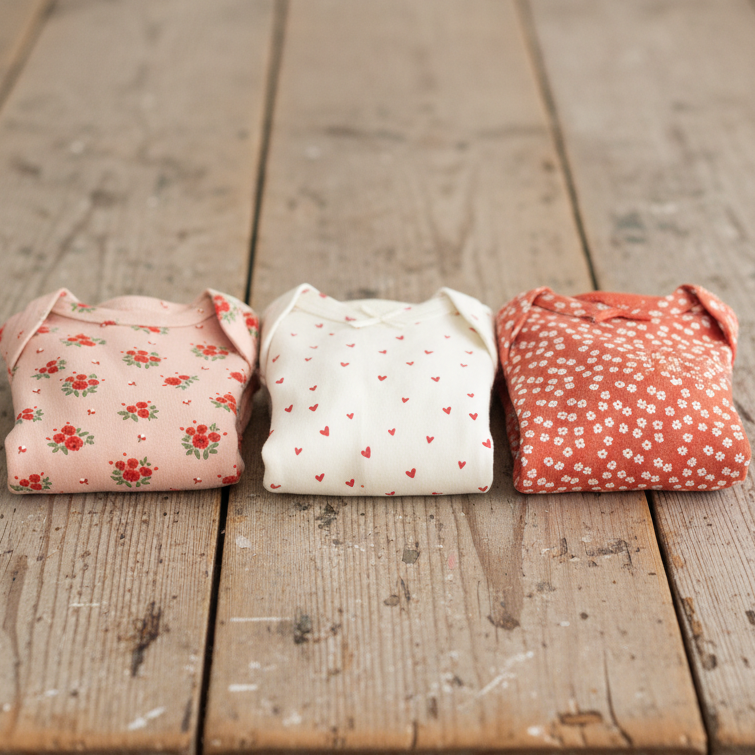 המארז מורכב משלושה בגדי גוף: שלושת בגדי הגוף מודפסים.