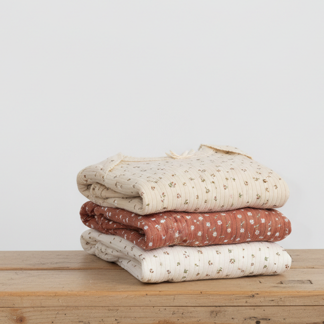 בגדי הגוף עשויים כותנה אורגנית איכותית, רכה וסופר נעימה, בסריגת ריב שטוח, גמיש ונח.
