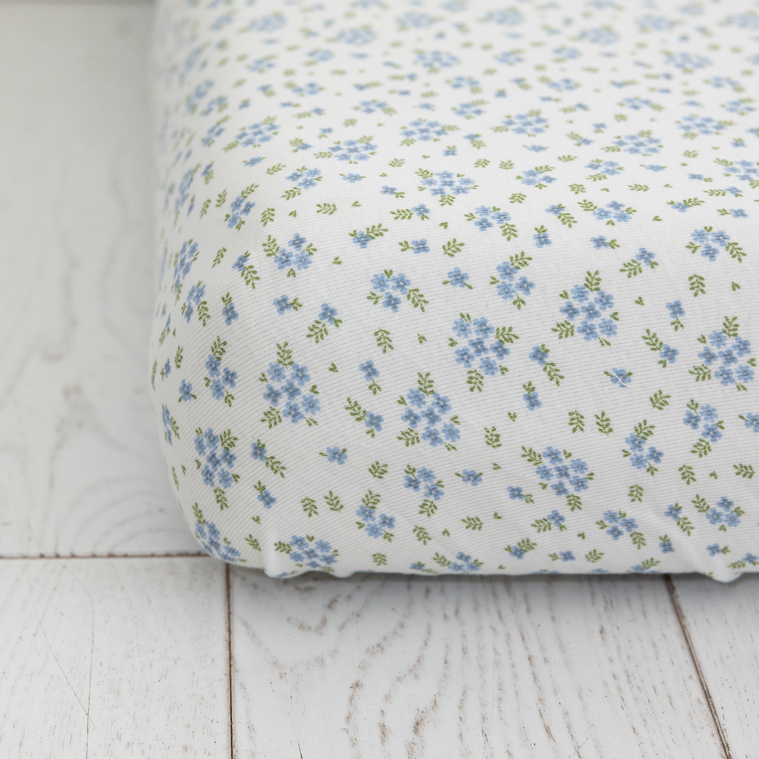 (81013) סדין ג׳רסי ״אלמוג״- פרחים כחולים קטנים